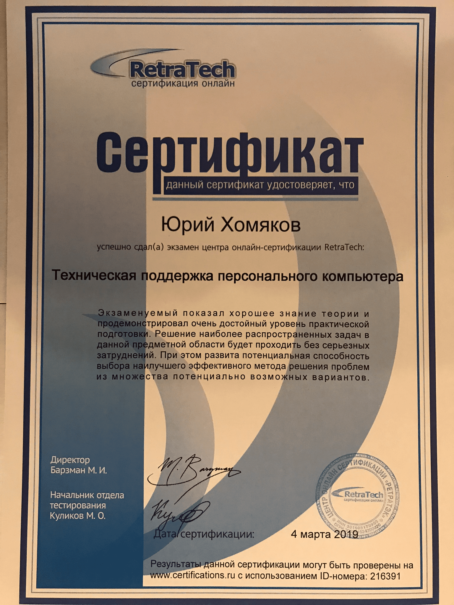 Сертификаты специалистов